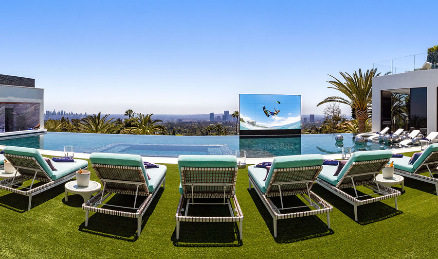 This exquisite residence delivers an unimaginable indoor/outdoor nirvana enhanced by unobstructed 270-degree views spanning from the mountains all the way to the ocean and across the incredible Los Angeles skyline in-between.